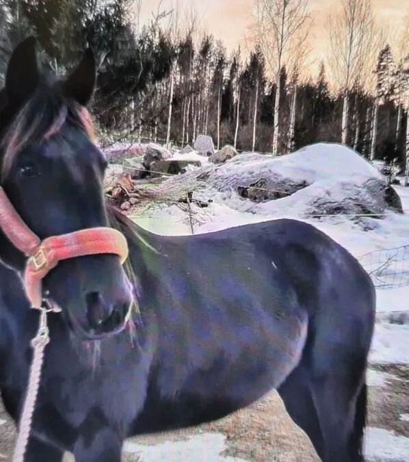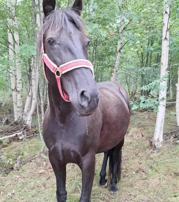 Riden regelbundet fram till för 1 år sedan. Positiv och glad häst som gillar att gå i skogen. Trafiksäker, enkel med hovslagare.